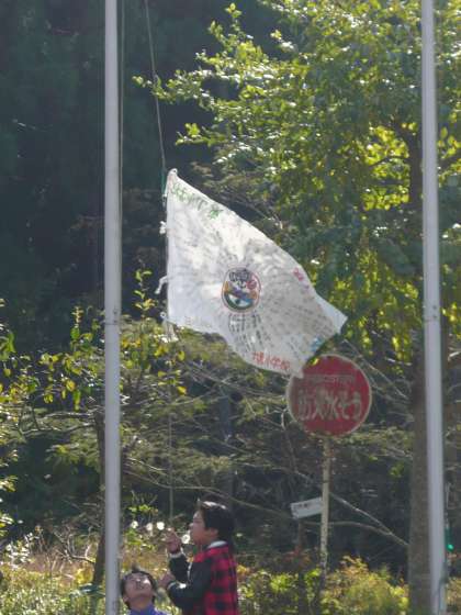 退所式を終えて,学校ごとに集合写真をとってバスににって,学校に向かいます。