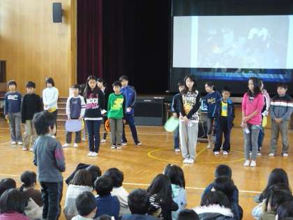 山の家での活動を様子を大きく映しだしながら,それぞれの言葉でしっかりと発表していました。この活動の中で得たことをキーワードにして,全校のみんなにしめしてくれました。とてもわかりやすい発表となっていました。
