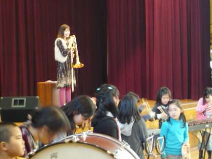 すばらしい演奏と流ちょうなおしゃべり,そして子どもたちの質問にも丁寧にお答えいただきました。1時間の予定時間を超えるコンサートでしたが,時間の超過を感じないコンサートとなりました。とても貴重な閉校記念行事となりました。ありがとうございました。
