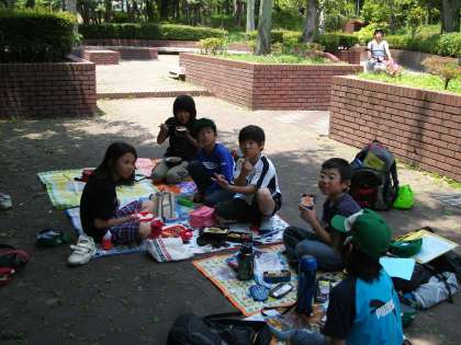 とても天気がよかったので,外でお昼ご飯となりました。