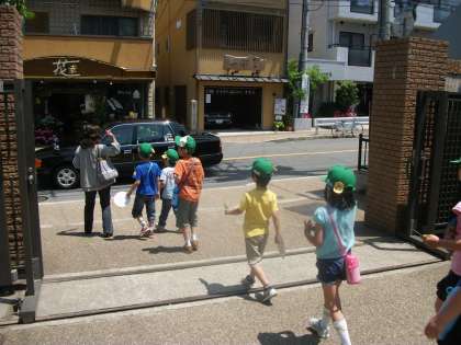 その後,3つのグループに分かれて子ども110番のいえウオークラリーを行いました。それぞれのグループごとにコースを回って,110番のいえを探しました。110番の家を見つけるごとにシールをもらって,確かめて歩きました。たくさんシールが集まりました。
