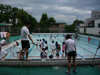 午前中は,雨模様でしたが,午後からは時折太陽も顔をのぞかせて,プール清掃をしっかりと行うことができました。