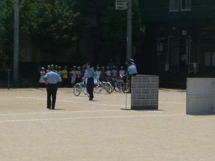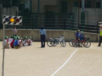 自転車に乗れる子どもたちも多くなっています。学年毎に,自転車の正しい乗り方,おり方など教えていただきました。コースを使って練習しました。