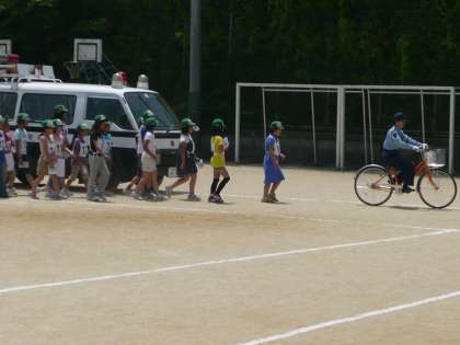 3時間目の4年生は,自転車運転免許交通教室として行いました。交通推進員,修道・貞教の交対協の方々に協力いただきながら実施しました。はじめに,試験の内容について説明をうけました。その後,試験コースを確かめました。ゼッケンをつけて,1つ1つを確かめながらしっかり,取り組んでいました。