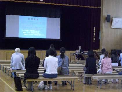 日曜参観の4校時,本校校長の小中より,東山小学校の教育について保護者や地域のみなさまに聞いていただく機会を設けました。校長の小中より,移行措置の2年間の教育課程から提示し,本校教育がめざすものを明らかにさせていただきました。保護者や地域の方々とよりよい連携をとりながら,東山小学校の子どもたちをみなさまと一緒になって,よりよく育んでいきたいと思います。21年度はまだまだはじまったばかりです。どうぞよろしくお願いします。