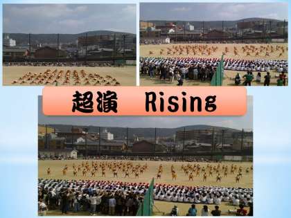 4年の演技です。始まりはアスリートの‘決めポーズ’で静の演技。黄色い法被をさっと脱ぎ、手に持った法被を大きく使った動の演技。素晴らしいものでした。4年生の練習を見たことのある先生が「今日が一番やった!」と。さすがファーストステージを引っ張ってくれる4年生です。これからの活躍が楽しみです。