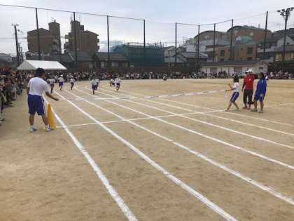80m走の様子です。今から1・2年50m走が始まります。進行が早くなっています(10分程度)このあとの5年競技,8年演技には余裕をもってお越しください。