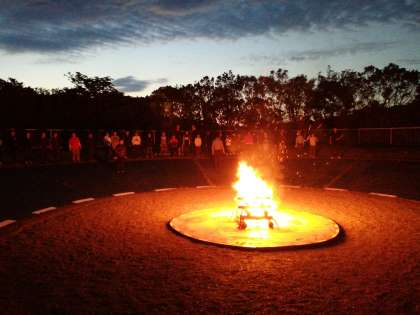 2日目最後の活動は、キャンプファイヤーです。火の神から3つの力をいただきキャンプファイヤーがスタートしました。レクリエーション係のみんなを中心にたくさんのゲームで楽しみました。