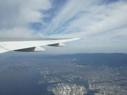 那覇空港に到着しました。着陸すると自然と拍手がわき起こしました。少し,雲が見えますが・・・。