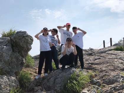 城山の頂上で景色を楽しんでいます!