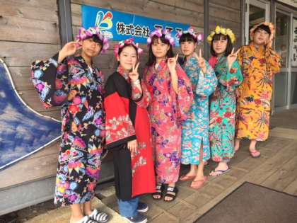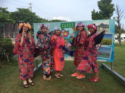 5時前に,琉装をしている女子を発見しました。山,海,琉装,たくさん体験させていただき,充実した顔をしています。