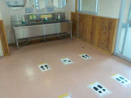 ・教室に入る前に,手洗い・うがい・アルコール消毒します。自分のハンカチを持ってきてください。