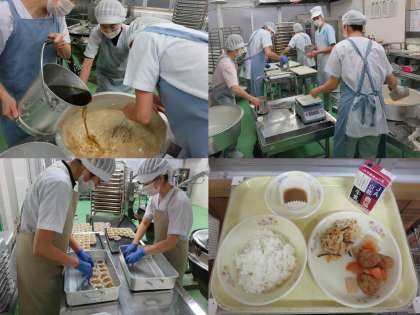 「ういろう」は江戸時代から伝わる和菓子です。米粉と黒ざとう,さとうを混ぜ合わせ,カップに1人分ずつ計り入れて,スチームコンベクションオーブンで蒸して作りました。もちもちとした食感と黒ざとうのあまさを味わえます。