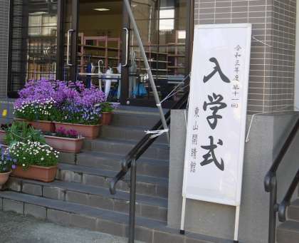 待ちに待った入学式。ぴかぴかのランドセルを背負った1年生が東山開睛館の門をくぐりました。新しい標準服に身をつつみ,緊張した顔の1年生がとてもかわいかったです。式の間,静かな雰囲気を感じ取り,行儀よく話を聞いたり,礼をしたりと頼もしい姿も見せてくれました。