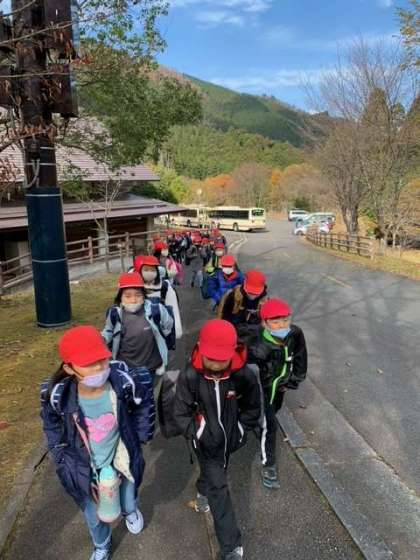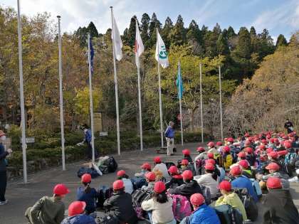 本館前の広場で,施設の方に挨拶をし,諸注意を受けて活動開始です。