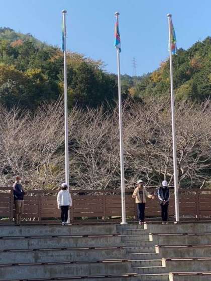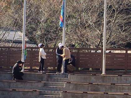 学級旗を班長さんがあげました。