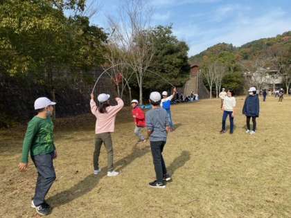 桜の広場で鬼ごっこや縄跳びなどをして遊んでいます!