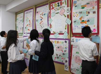8,9年生の投票により,各クラス1プランが選ばれ,雄勝中に送られます。プランを見入る上級生の視線も真剣そのものでした。