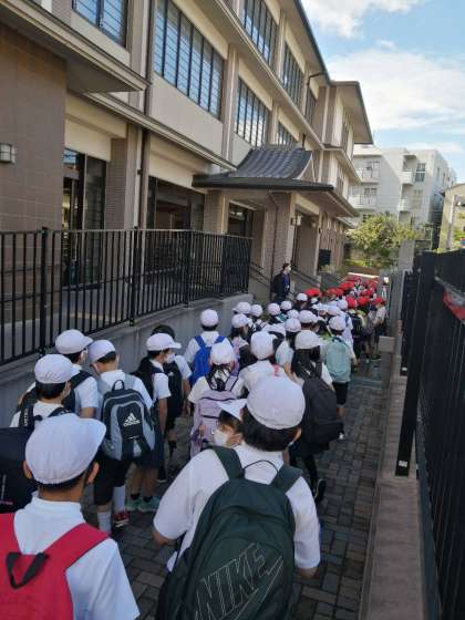 6月7日(火)4年生は社会見学に出発しました。暑すぎずとてもいい天気で,子どもたちもうれしそうです。午前中は石田水環境保全センターです。