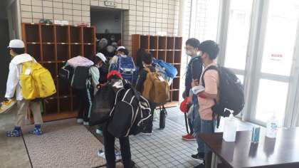 荷物を部屋に入れました。きれい!どこを自分の場所にしようかな、と話す様子が楽しそうです。次はいよいよ活動開始。何がいるのかな、しおりを見て調べよう。