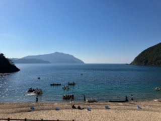 貸し切り状態の海辺です。天気もよく、気持ちよく楽しんでいる子どもたちです。