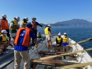退所式の後、カッターというボートを漕いで田烏港を目指しました。