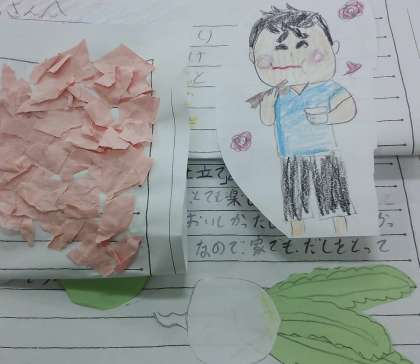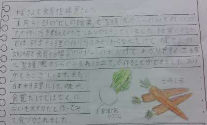 実習後は、教えていただいた料理人の梶さんにはもちろんのこと、お世話になった食育指導員の方にも感謝の思いをもつ子がたくさんいました。