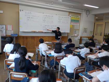 算数科の学習で、「比例」について学習していました。6年生や後期課程でも出てくる「比例」。どんな関係を「比例」というのか、丁寧に確認しながら学習を進めていました。