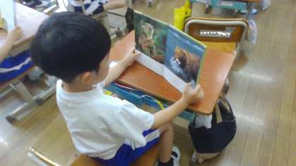 1年生は、国語科で「くちばし」という学習を始めています。クイズ形式になっているこのお話を読んで、自分たちでも『どうぶつクイズ』をつくることにしました。どんな面白い特徴をもった動物を探すために、みんな動物の本を読んでクイズに使えそうなものを探します。お気に入りの動物、見つかるといいね!