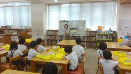 1年生は、週に1回メディアセンターに行って、お気に入りの本を探して借りています。