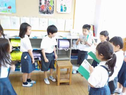 おおきなかぶのお話で、みんなで劇をやってみたい、ということになり、役を決めて劇をして遊んでみました。言葉に合わせてどう動こうか、どんなセリフがつけたせるか考えながら楽しんでいました。休み時間にも、「やろうよ!」と声をかけあって劇をしていたのが素敵でした。