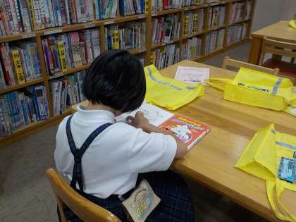今日もお気に入りの本をわくわくしながら探している子どもたち。「このシリーズ、とってもおもしろいよ!」「これ気に入った!」など、少し分量が多い本でも楽しく読んでいる子が増えてきました。