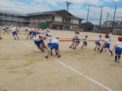5年生は今年度も体育大会で競技「棒引き」を行います。そして、1回目の練習がありました。行い方について、安全についてのルールを確認しながら、力いっぱい棒を引き合いました。これから、クラスで話し合ったり、練習を工夫したりして、学習を進めていきます。チームワークを高めていきましょう♪