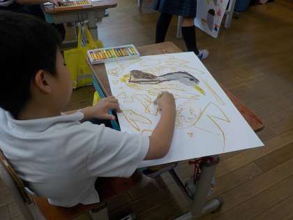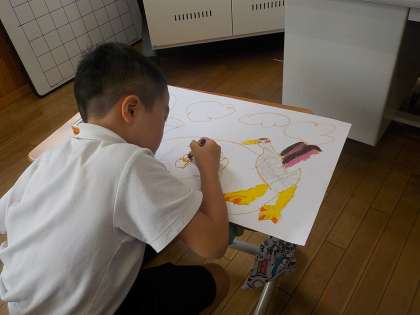 『かるがものクッカ』のおはなしを聞いて、それぞれ気に入った場面を絵に描いていきました。イメージを膨らませながら一生懸命色を塗っていました。どんな作品に仕上がるのか、これから楽しみですね!
