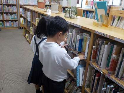 1年生は週に1回メディアセンターで本を借りたり返したりしています。