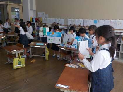 1年生は国語で「くじらぐも」の学習をしていました。