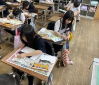 はじめは模様を見て,「どんなふうに書くんだろう?」「針はどこにさすのかな?」