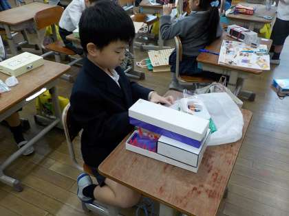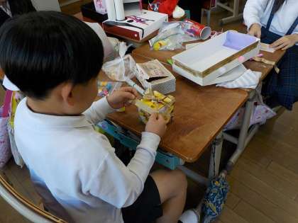 1年生は、図工で「かざってなにいれよう」という学習を進めています。
