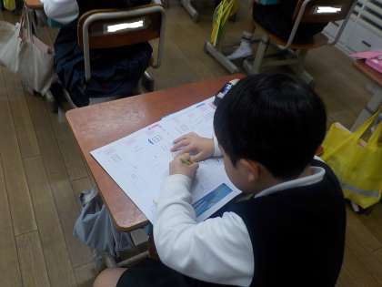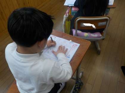 1年生は、書写で「文字のかたち」について学習していました。