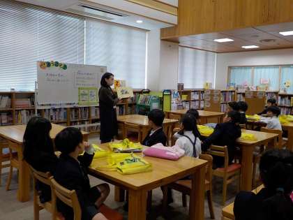 1年生は、週に1回お気に入りの本を見つけて借りたり、本を返したりするためにメディアセンターに行っています。