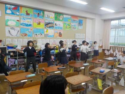 1年生は12月の学習交流会で、2年生の素敵な発表を見せてもらいました。歌って、踊って、クイズにもたくさん答えさせてもらえる楽しい時間を過ごした1年生。2年生が見せてくれた歌と踊りが頭から離れず、教室に帰ってからも先生に曲を流してもらい、ノリノリで踊っていました。あんな素敵な2年生になれるように、3学期しっかりがんばろうね!!