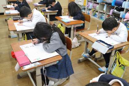2学期で使っていたフエルトペンは、書き方にも慣れてきたので、「お正月」と大きく書くことに挑戦しました。ペンの持ち方に気を付けて一生懸命書いていました。えんぴつでも「とめ」「はね」「はらい」に気を付けて書くのをがんばりました。