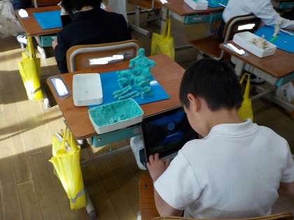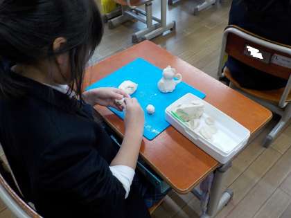 ねん土を手・指でひねったりつまんだりして形をつくり、「いっしょにおさんぽするなかま」をつくりました。いっしょにつくった「じぶん」と並べてみたり、肩に乗せて見たり、まわりもつくったりして楽しみました。作った作品はタブレットで撮影して、アルバムにしました。タブレットを使うのも少しずつ上手になってきました!