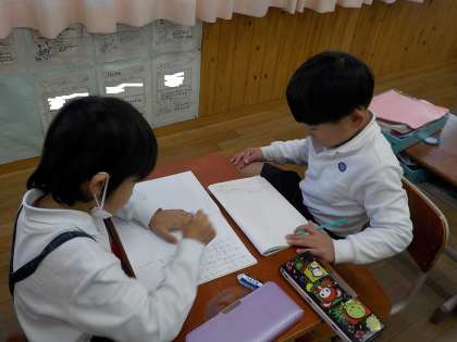 先月のことですが、12月の最終週にお楽しみ会をすることになり、一生懸命準備していた1年生。1学期のときより自分たちでどんどん話を進めて、どんなことをみんなに話すのか、遊びのルールをどうしたら楽しいかなど、とても楽しそうに話し合っていました。自分たちの力で、素敵な思い出が作れるのは、本当にすてきだなと思いました。3学期もこの地からをたくさん発揮してほしいなと思っています。