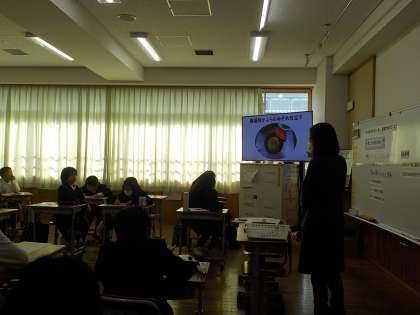 栄養教諭の芹口先生が教室に来てくださいました。来週の調理実習に向けて、「和食とは何か」「日本料理と和食の違いとは何か」「和食の良さとは何か」などについて学びました。