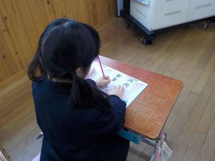 文字によって、「おれ」のほうこうが少し違うものがあり、書き方の違いについて学ぶことができました。みんな、お手本をよく見て書くことができるようになってきたなぁと、感心していました。