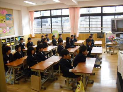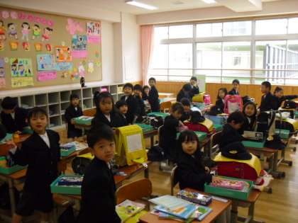 いよいよ学校がスタート。一年生も元気に登校してきました。一時間目の様子です。みんなドキドキのスターとかな?早く慣れるといいね。