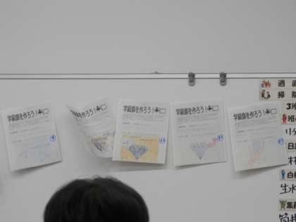 学級目標に合わせた学級期のデザインと制作者を決めました。