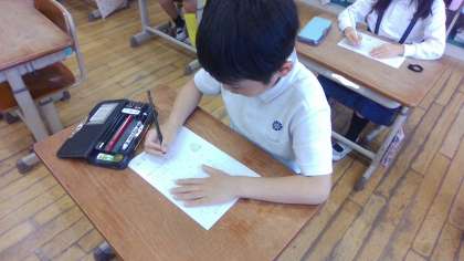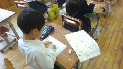 カタカナを書く時に鉛筆をどの向きに走らせるとよいか、力の入れ具合はどうなるのかなども確かめながら書きました。字の形に注意して書けるようになるといいなと思います。