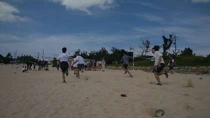 現在、9年生は残波ビーチで学年レクを楽しんでいます。写真はビーチフラッグの様子です!
